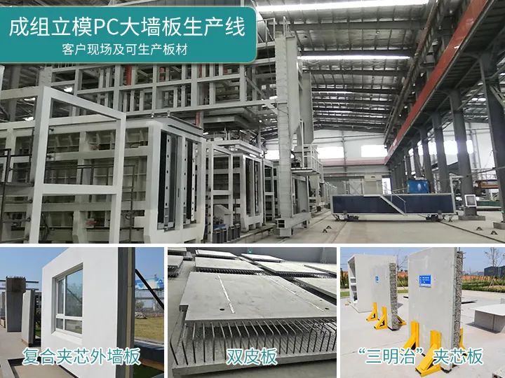 玛纳公司的大立模PC生产线采用成组立模式成型技术(系玛纳公司原始技术创新成果),模块化设计及控制,实现新型PC大墙板的工业化生产,通过“大立模+T型架”的子母模技术(专利技术)极大的提高生产效率,解决了现阶段PC平模生产线只能生产单一平面构件的弊端。