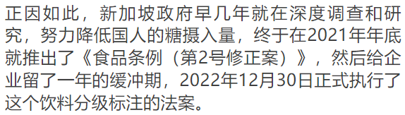 这是新加坡对包装饮料执行的有史以来最严格的法规——《食品条例(第2号修正案)》,不仅是包装饮料,到今年年底,各种手工现制的饮料比如鲜榨果汁、奶茶,也要开始贴这个标签。