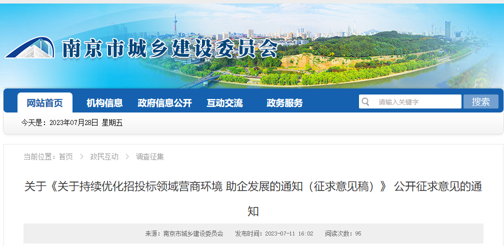 为落实《江苏省招标投标条例》《关于进一步加强和规范工程建设项目招标投标管理的通知》等法规和文件规定精神,我们起草了《关于持续优化招投标领域营商环境助企发展的通知(征求意见稿)》,现公开征求意见,公众可将书面意见通过下列途径反馈:1.邮寄地址:南京市鼓楼区广州路183号602室,邮编210000。2.电子邮箱:colastar@foxmail.com。公开征求意见时间为:2023年7月11日至2023年7月25日。请在信封、电子邮件主题上注明“《关于持续优化招投标领域营商环境助企发展的通知(征求意见稿)》修改意见”。附件:《关于持续优化招投标领域营商环境助企发展的通知(征求意见稿)》附件: