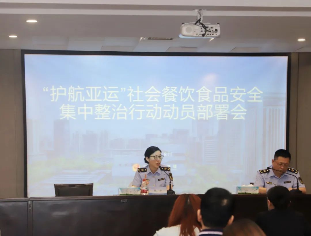 今年是杭州第19届亚运会、第4届亚残运会的举办之年, 8月10日,高新区(滨江)市场监管局召开“护航亚运”社会餐饮食品安全集中整治行动动员部署会,在全区开展为期一个月的社会面餐饮食品安全规范提升行动,进一步提升我区餐饮业食品安全整体水平。全区74家大型以上餐饮单位和集体用餐配送单位负责人参加会议。
