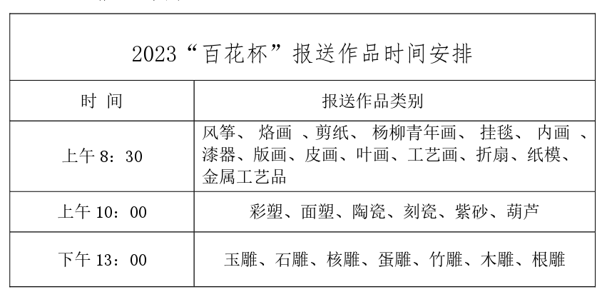 1.报送作品时,请服从工作人员指挥,有序进入场馆,按照设定位置统一摆放,确保作品安全。