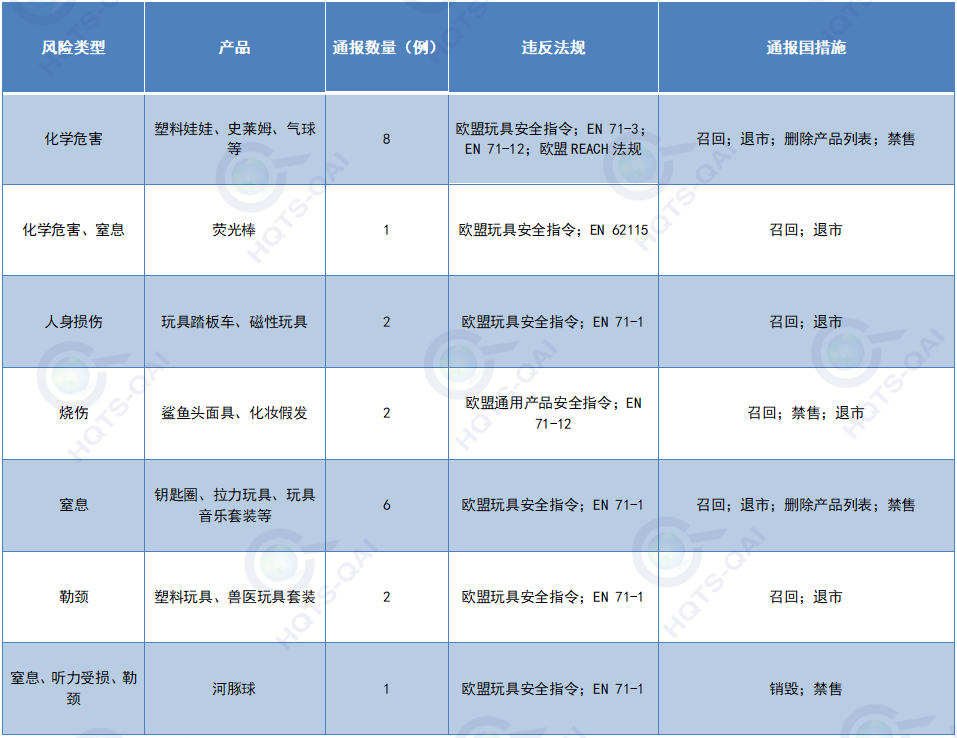 2023年第27-28周,我国出口至欧洲市场的各类玩具被RAPEX系统通报22起,主要为存在窒息、化学风险的玩具。