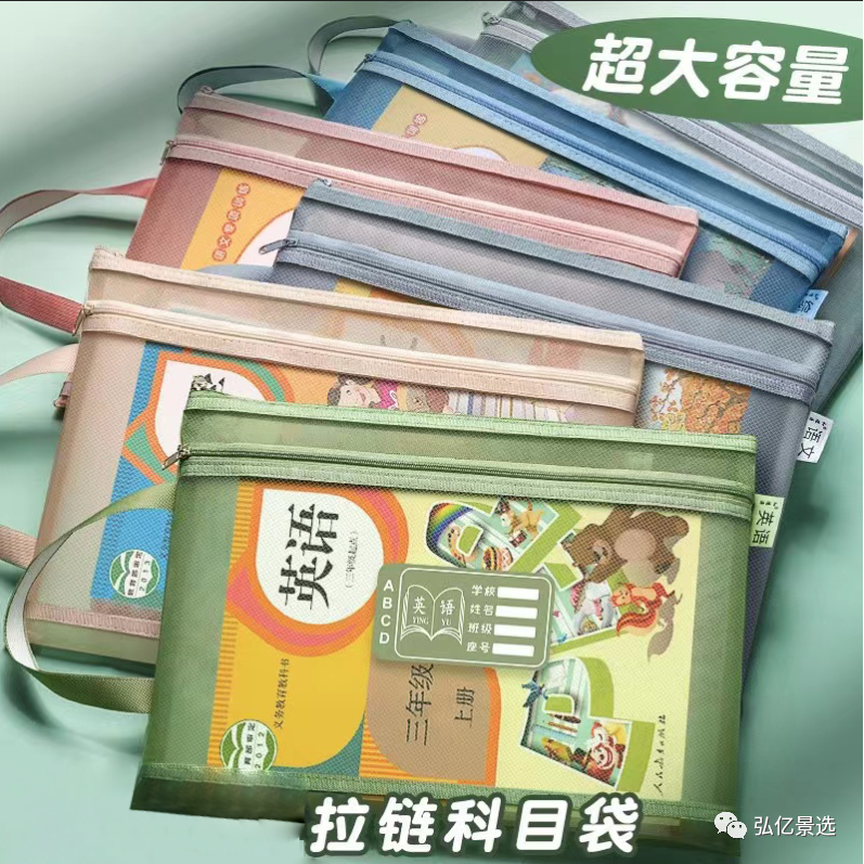 科目分类文件袋大容量A4拉链袋学生高颜值尼龙网纱袋