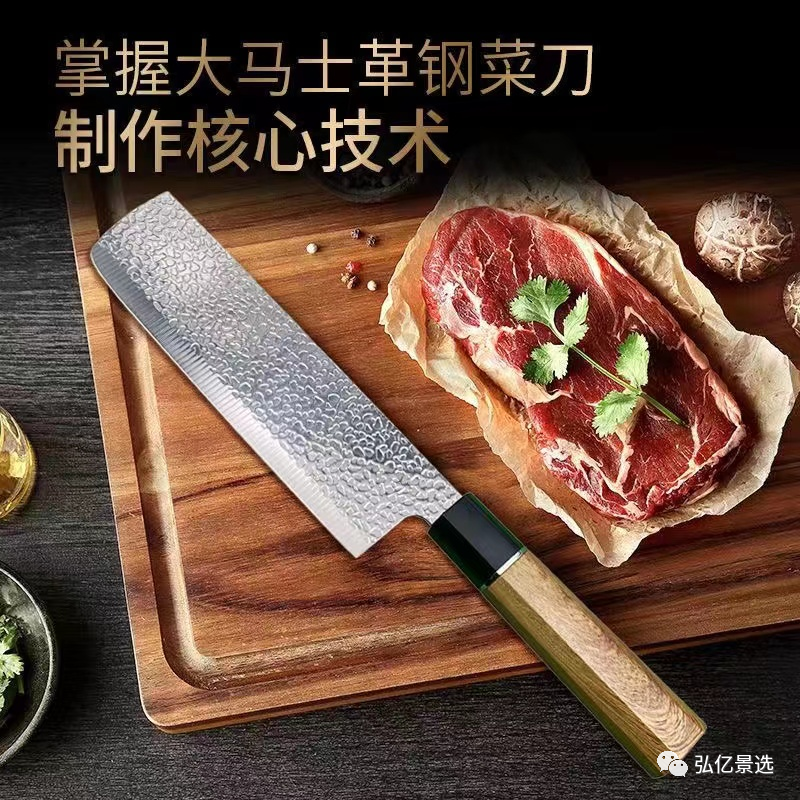 【专享福利】LT大马士革花纹手工锻打菜刀家用水果刀切菜刀