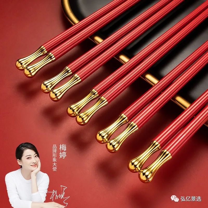 【粉丝福利】优圣美帝红筷子防滑不发霉耐高温结婚喜庆合金筷子
