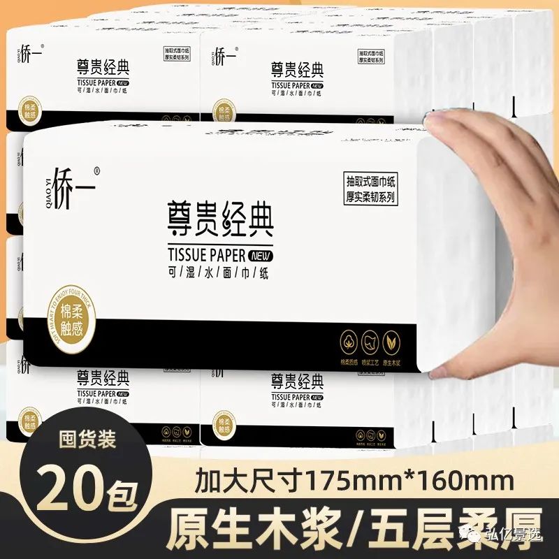 侨一原生木浆家用大包抽纸5层加厚可湿水卫生纸餐巾纸抽