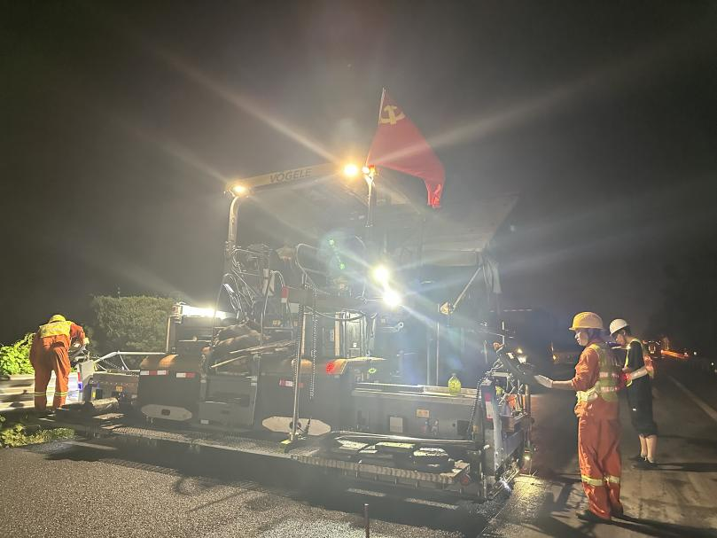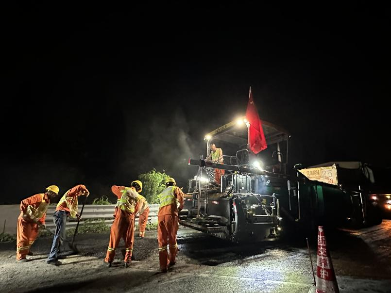全体人员坚守岗位,争分夺秒,紧扣封道、进场、铣刨、摊铺、碾压、清理等各项工序进度,严格把控铣刨、摊铺、碾压等关键环节,有序协调施工设备、运输车辆等,通过班组间互相协作实现施工现场有条不紊。