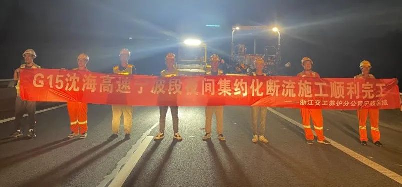 8月12日早上6点,随着姜山北枢纽分流点预警车辆的撤离,由公司宁波区域中心实施的沈海高速宁波段夜间集约化断流施工圆满收官。