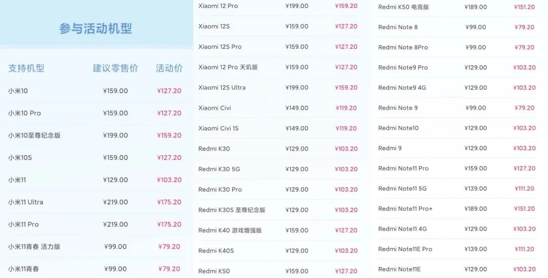 一共37款手机电池换新折扣,全国的小米服务门店都可以换,而且不限量,不过寄修的话不包含物流费,建议到店维修。这里就有些小米6和K20 Pro老钉子户陷入沉思了。