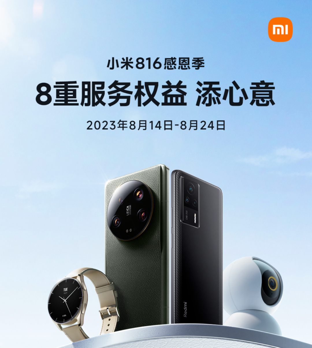 对于很多老钉子户来说,估计最先不太行的就是电池了,毕竟用了一两年正常衰减情况下,续航就直接扑街了。而小米这边官宣启动816感恩季,活动时间为8月14号到8月24号持续十天,给大家带来了多款设备换屏5折优惠、还有换电池79元起。