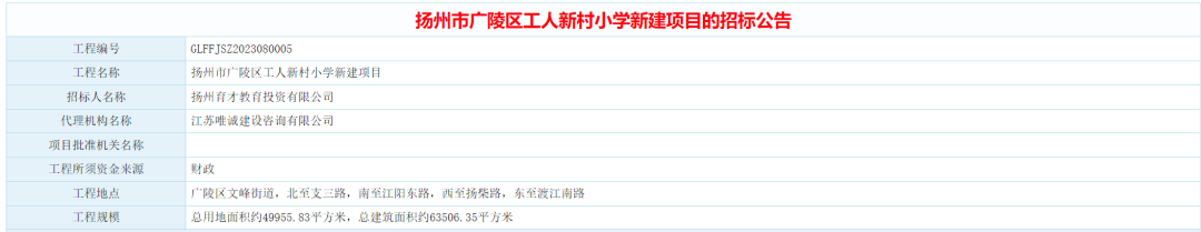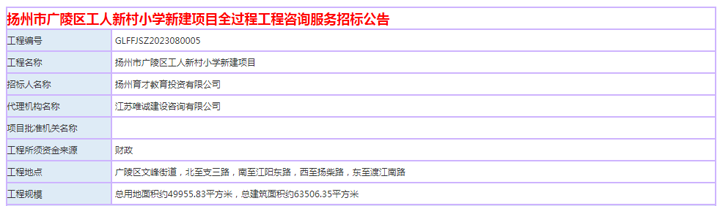 扬州市广陵区工人新村小学新建项目全过程工程咨询服务招标公告