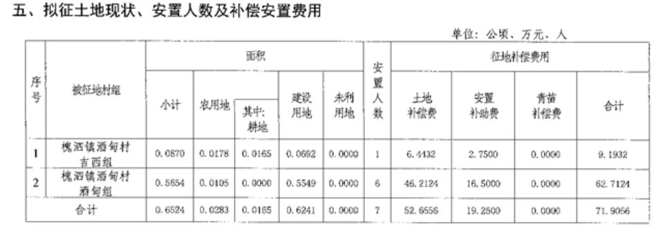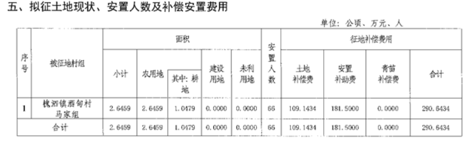▼ 拟征收土地现状、安置人数及补偿安置标准