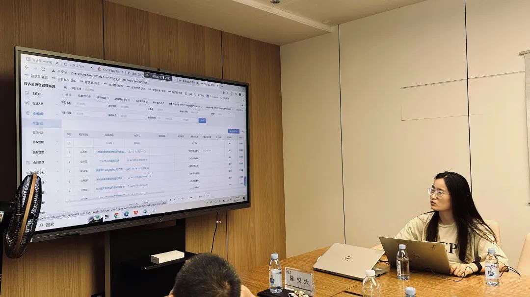 负责热联安智“智多星”产品的IT同事高璐向与会人员进行了安智数智化系统的分享与演示,详细介绍了“智能调度”、“电子签单”、“一托一码”等高效便捷的数智化小工具在日常工作中的应用及效果。