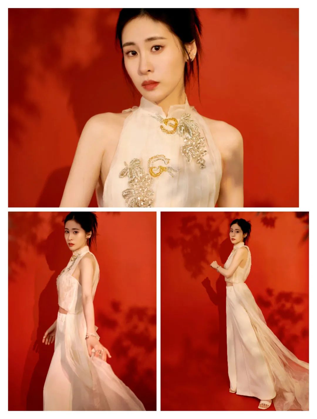 *在这些服装的穿搭中,一些旗袍元素的结合,带来了更多的设计感。
