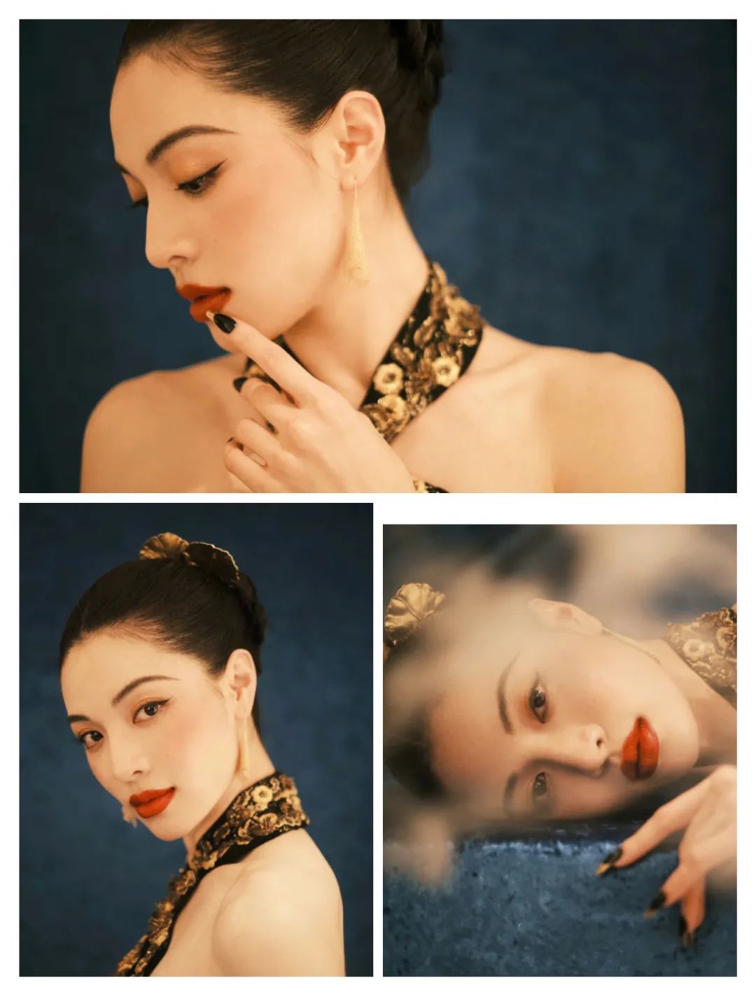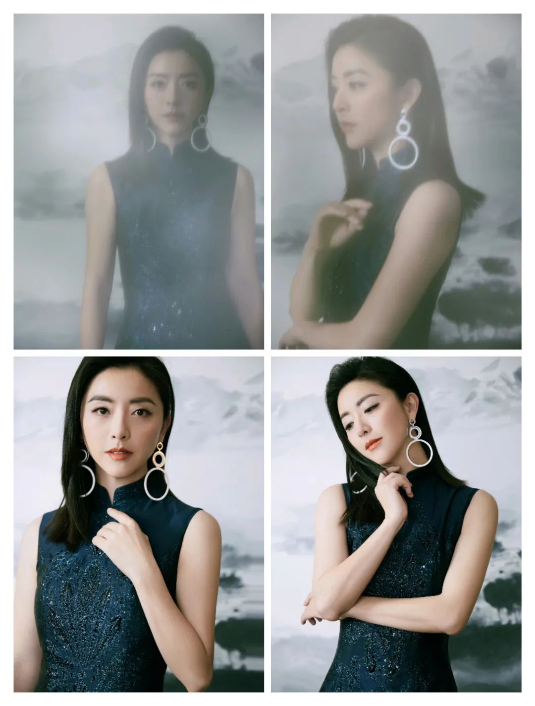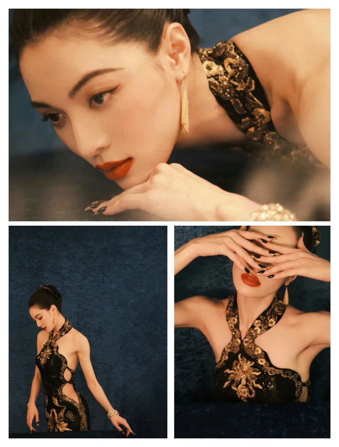 钟楚曦的服装在黑色和一些金色的相互搭配中,色彩的对比也多了图案的活力气质;