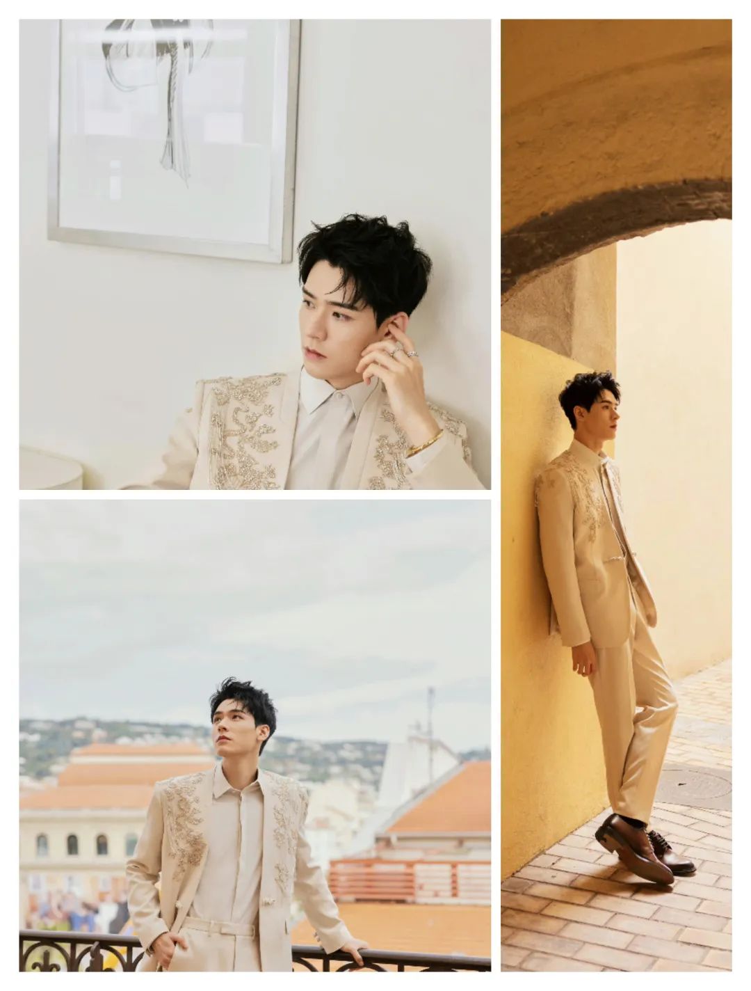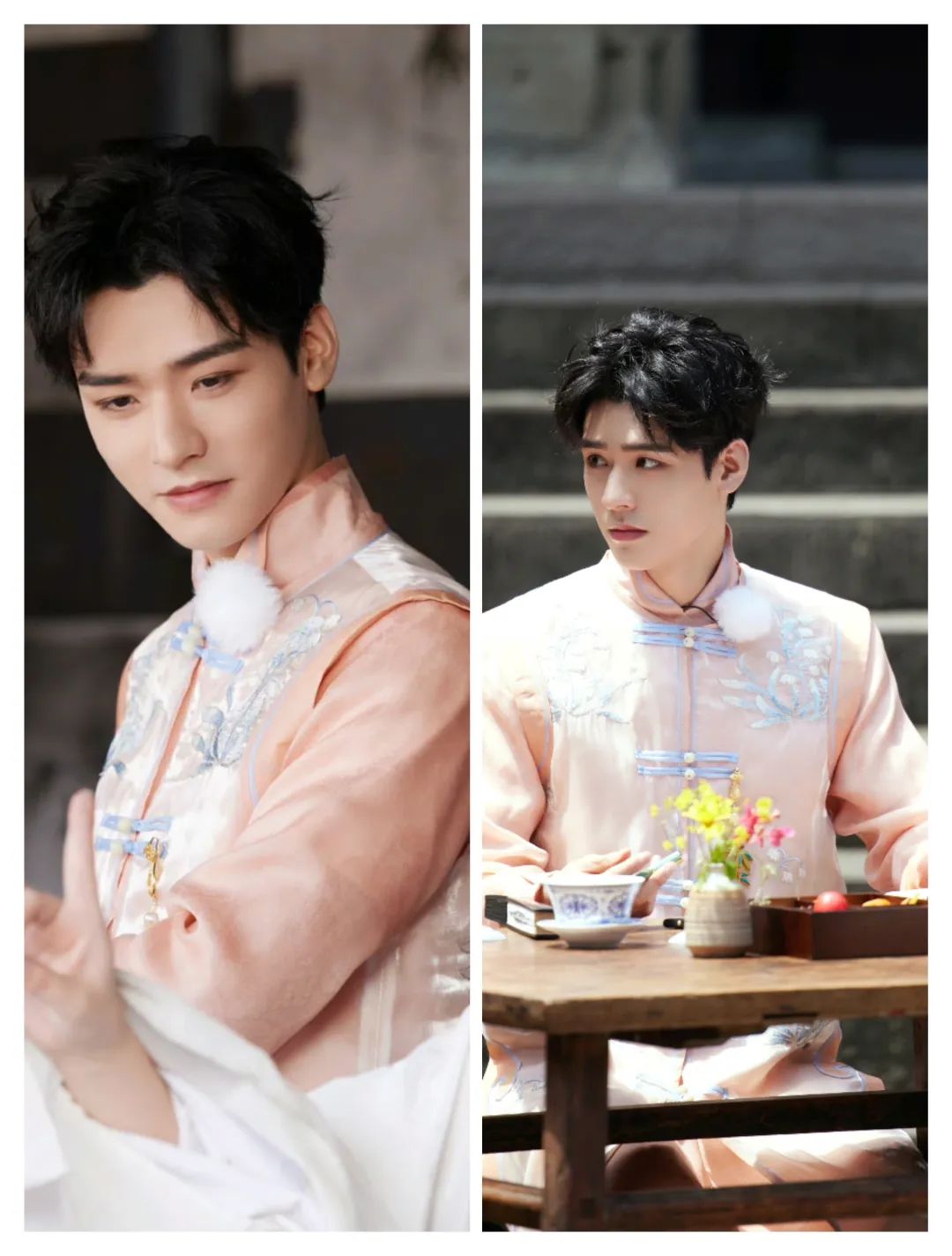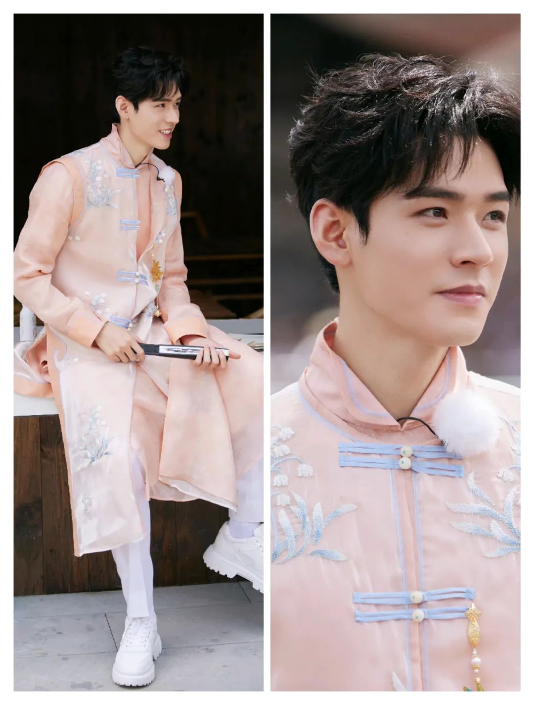 龚俊的穿搭在柔和的色调中,也多了一些气质的柔美;