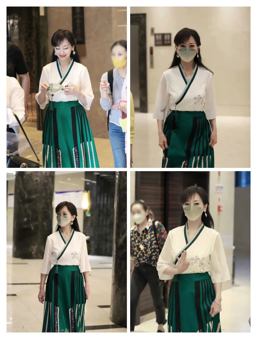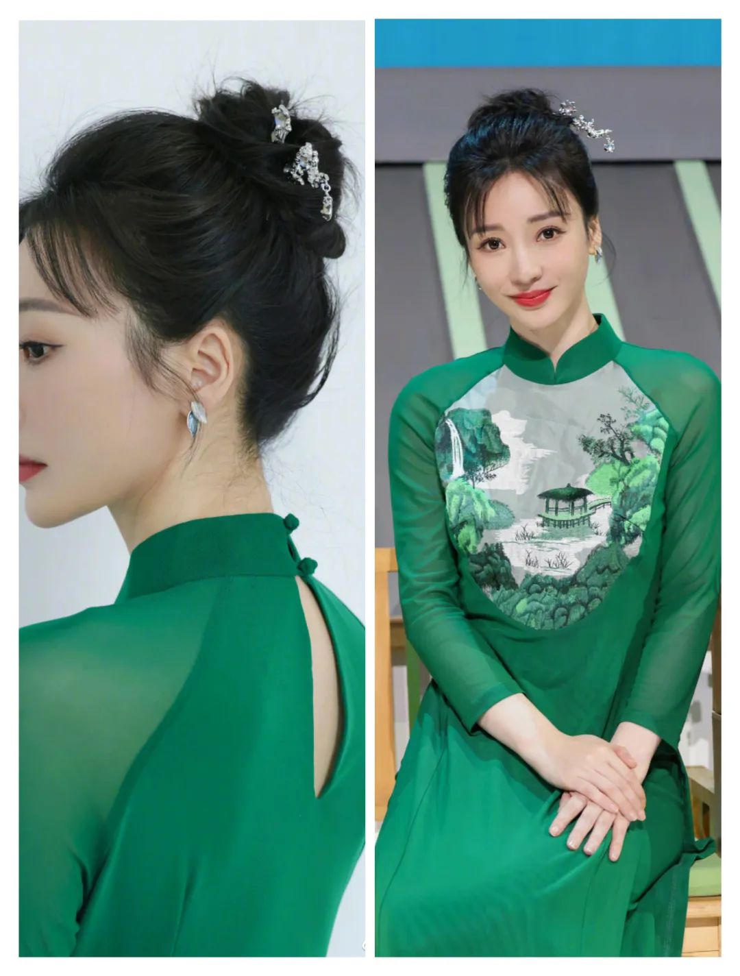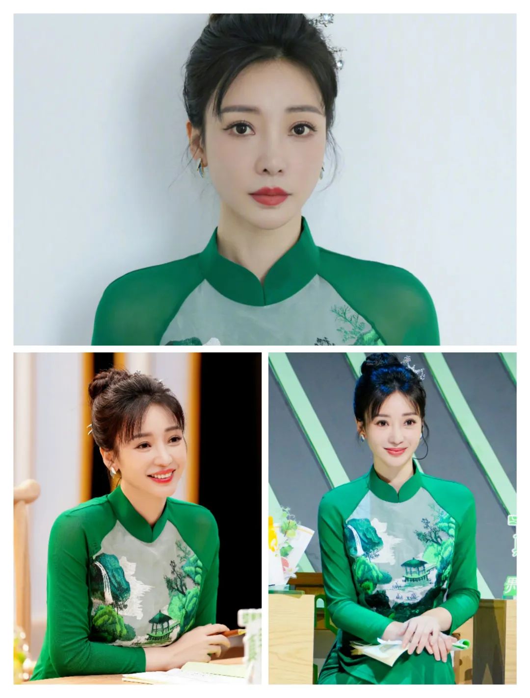 孟佳的服装在绿色系的颜色中,更多了一些气质的清新;
