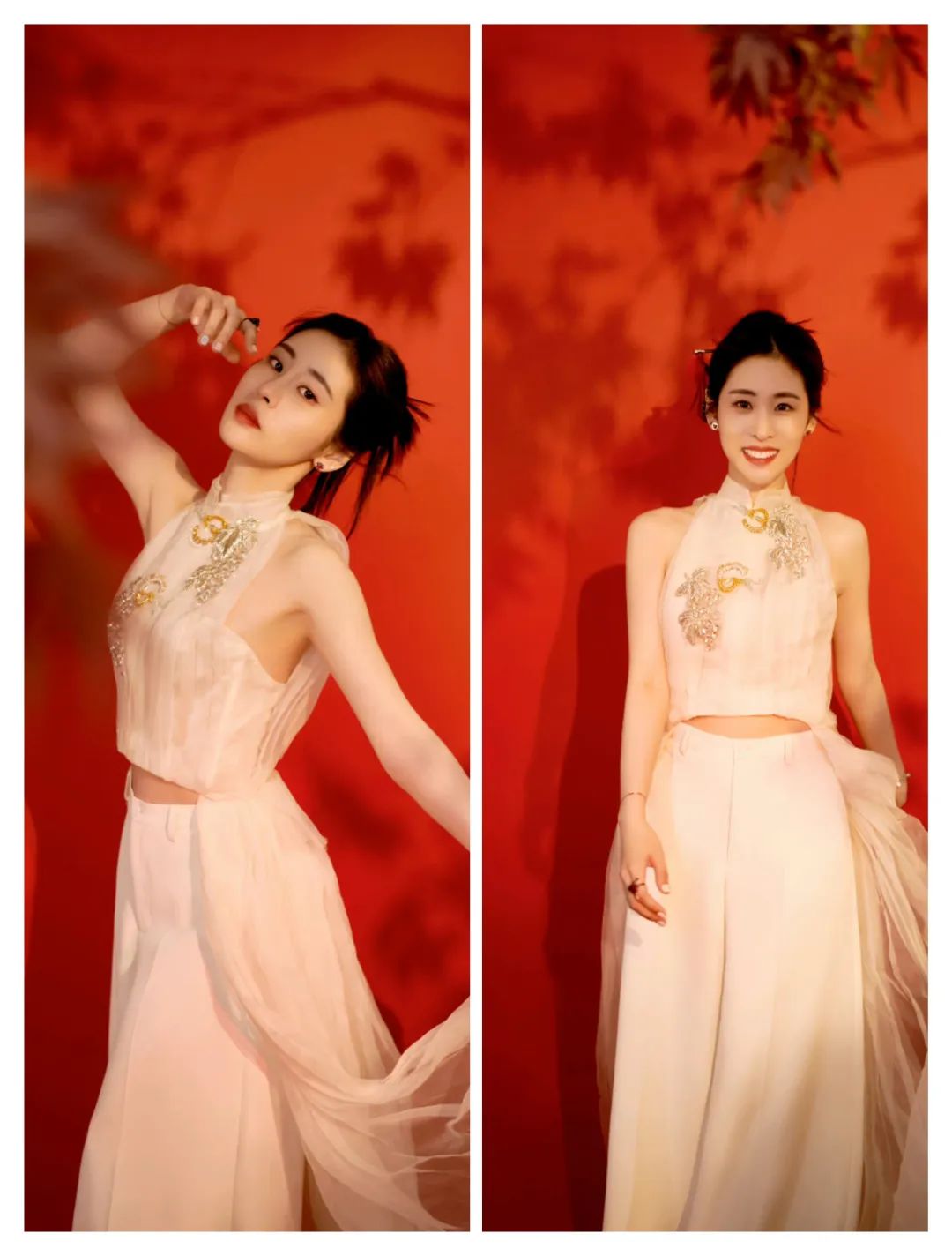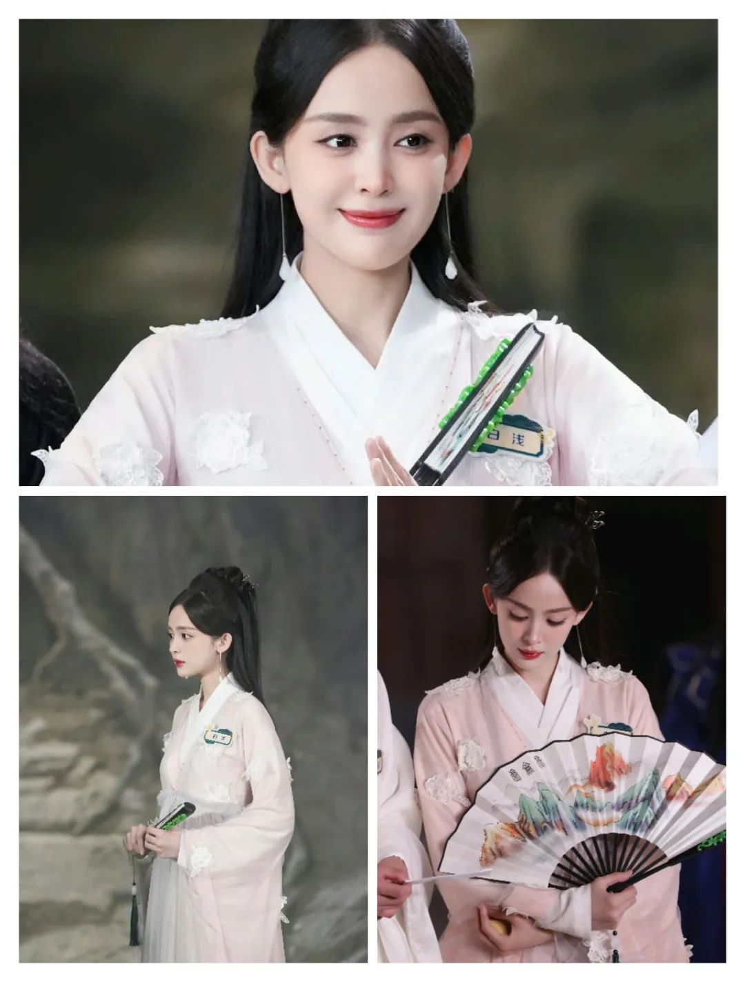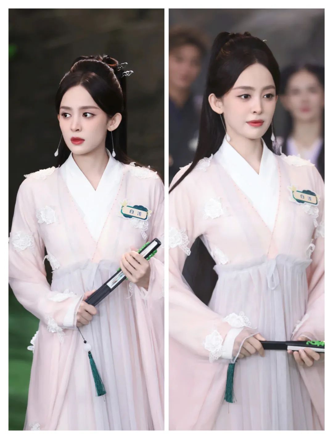 娜扎的穿搭多了一些浅色系的柔和,也有轻薄面料的轻盈感;