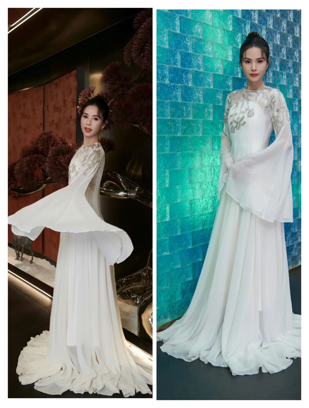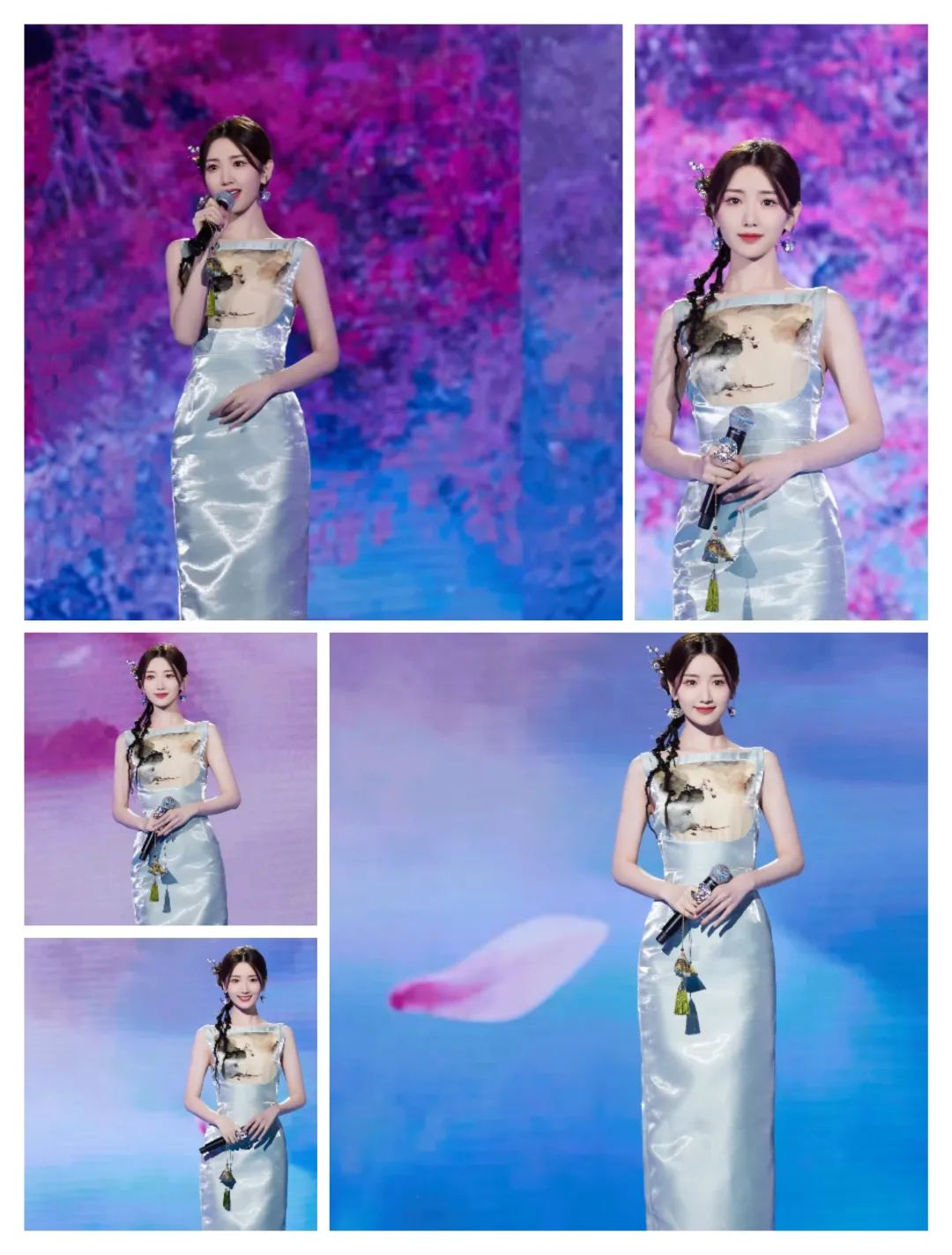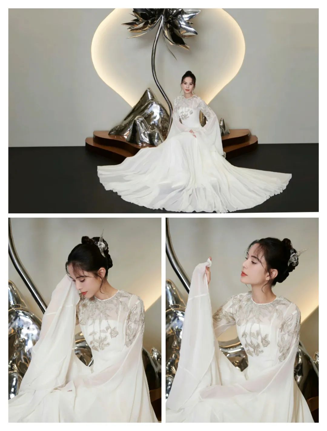 娜扎的穿搭多了一些浅色系的柔和,也有轻薄面料的轻盈感;
