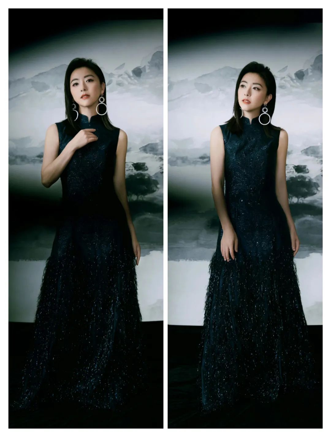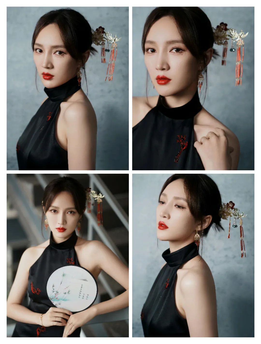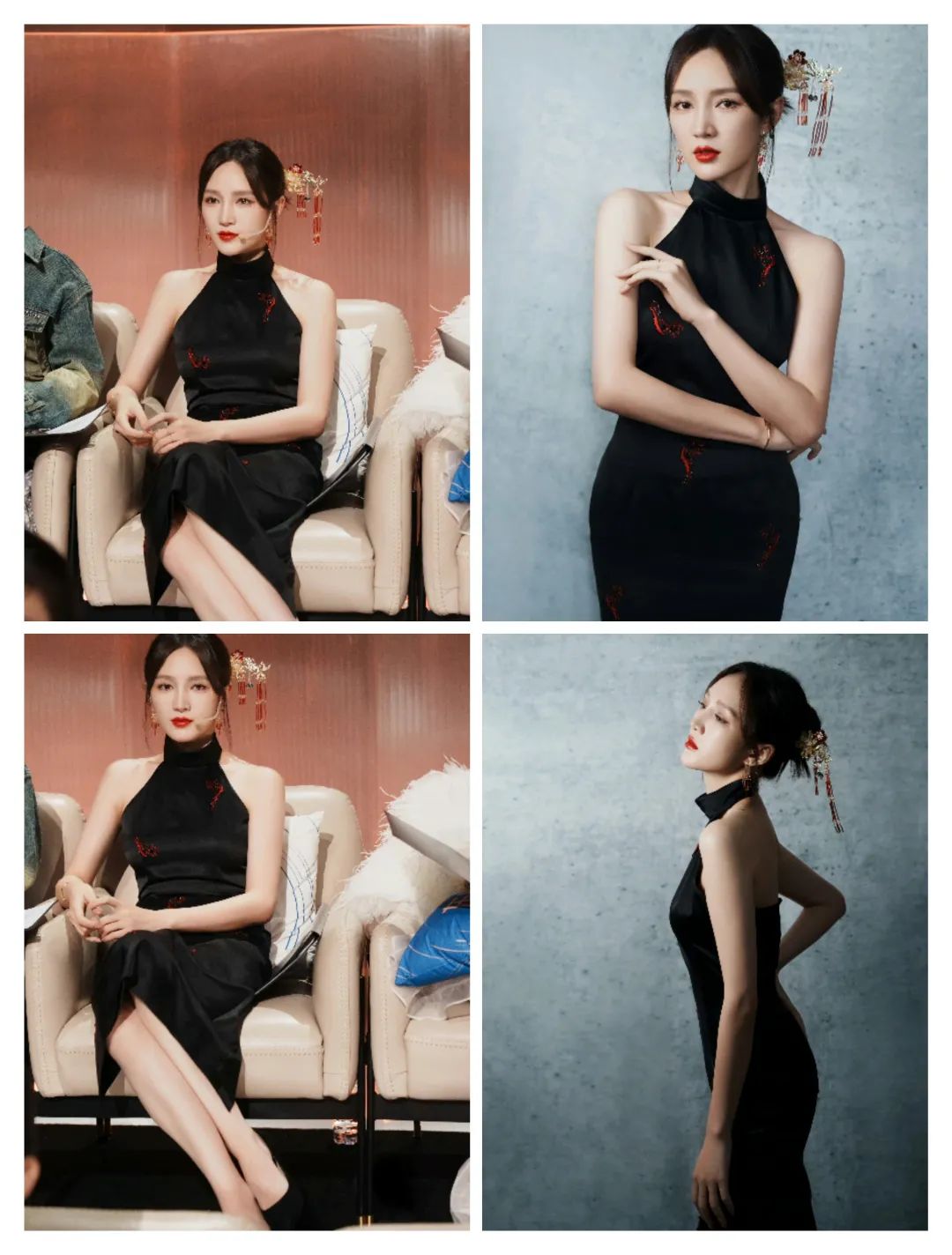张碧晨的黑色服装和盘发搭配,让气质也更为浓厚;