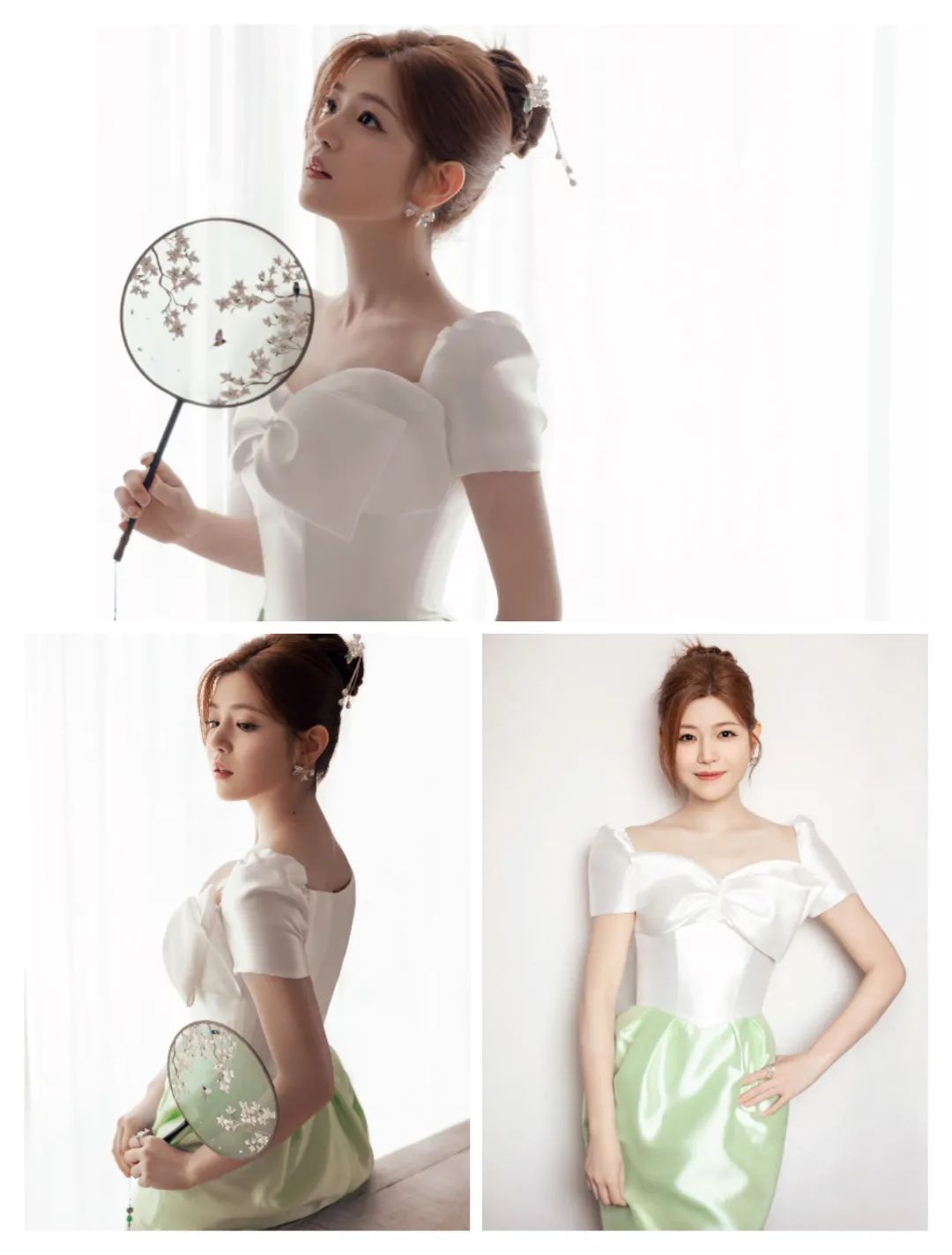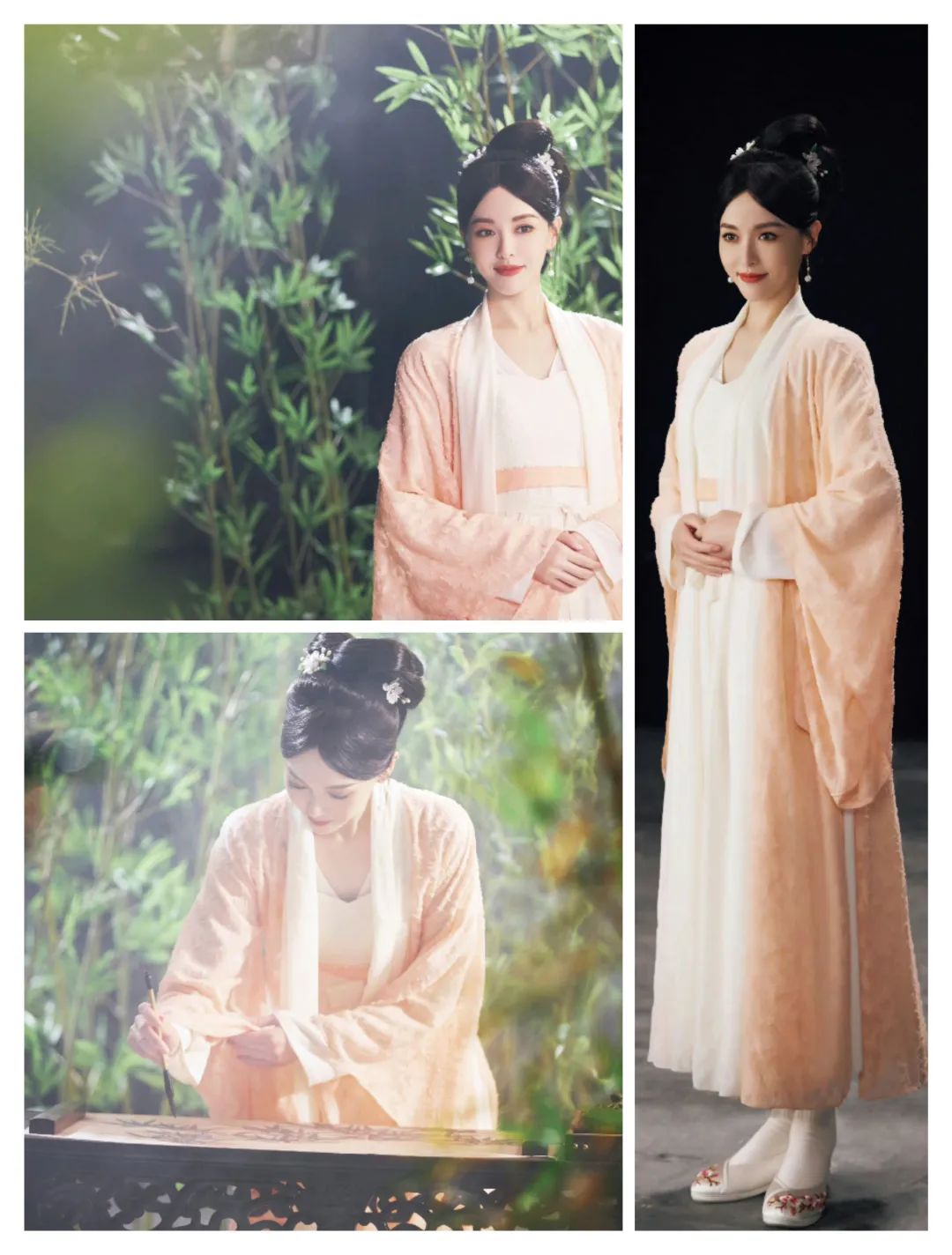 陈妍希的穿搭有盘发、发簪和团扇等这些造型和饰品的出现,让韵味更为浓厚;