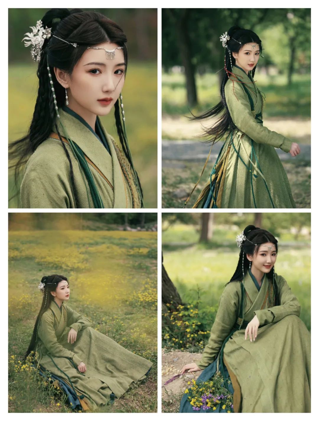 这套汉服在绿色系的颜色中,还多了一些绿色的生机活力气质;