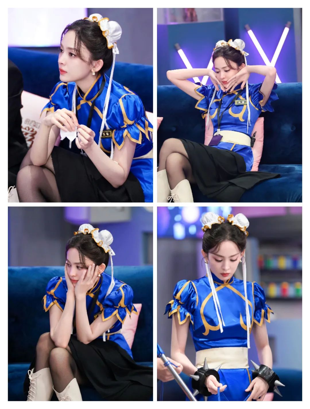 娜扎的服装多了蓝色的清冷,还有一些色彩带来了一些撞色刺激;