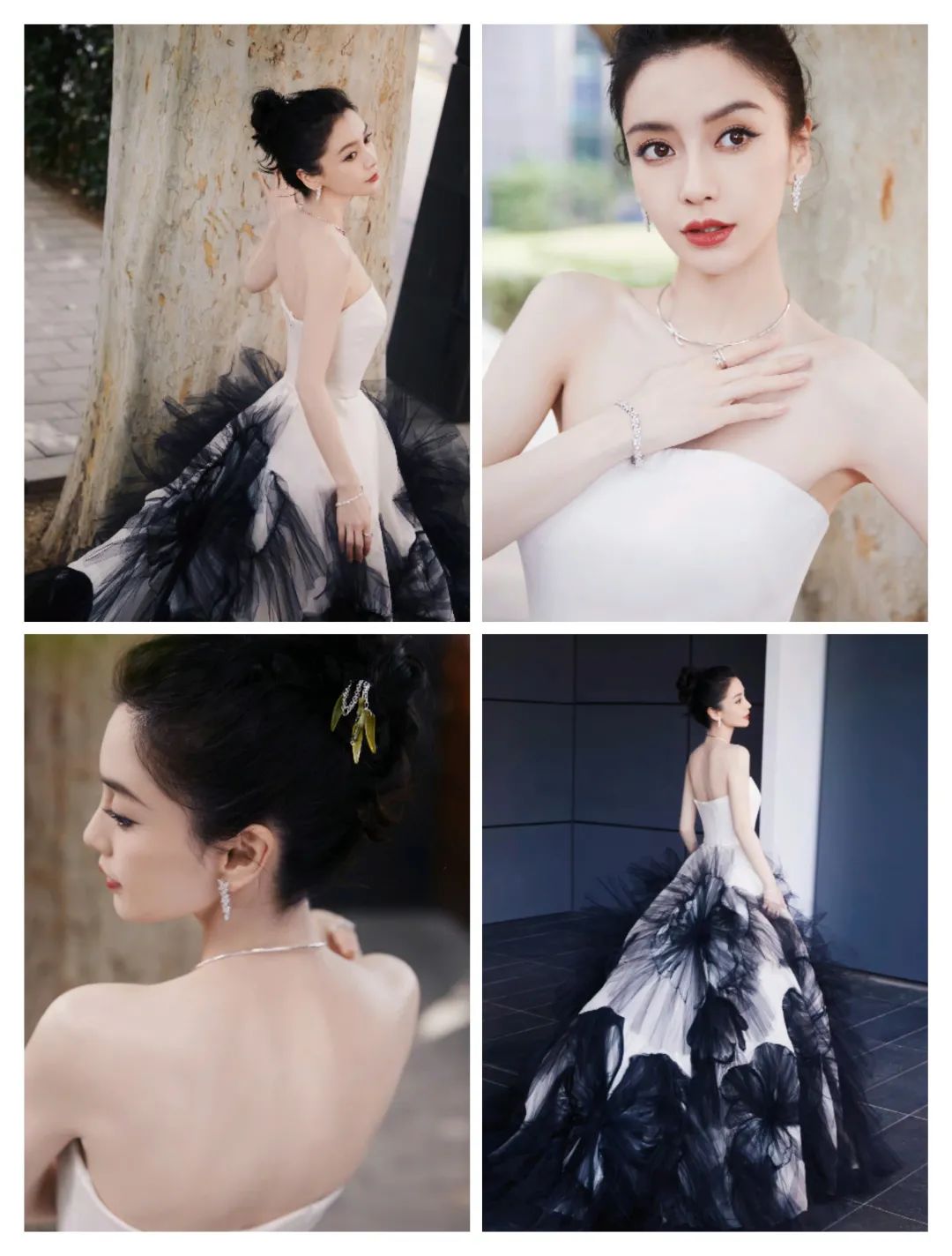 杨颖的服装在白色和黑色等色彩的搭配中,带来了色彩的撞色冲击,更多了时尚;
