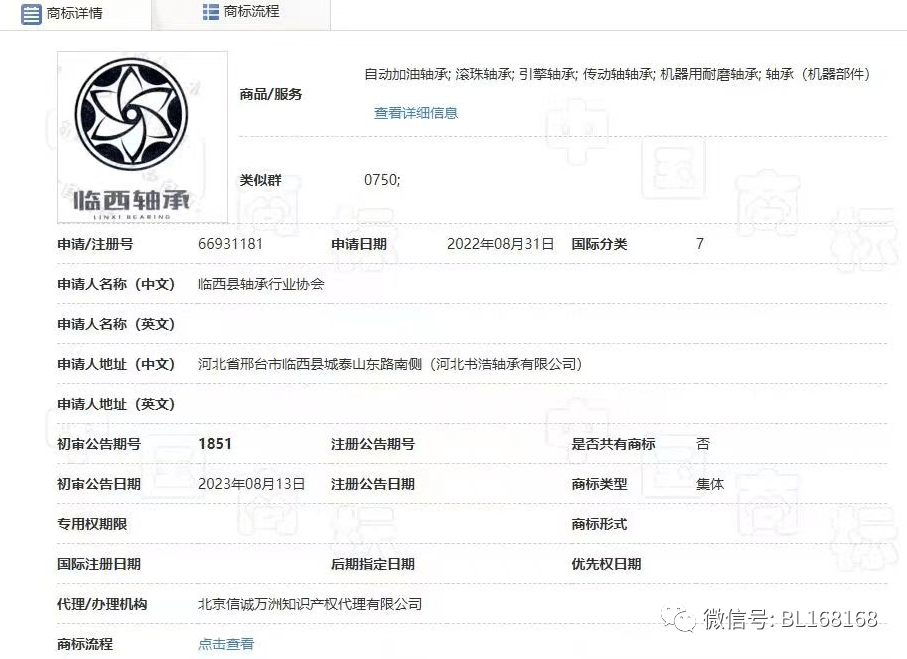 2023年8月13日,国家知识产权局商标局发布“临西轴承”集体商标初审公告,作为“中国国际轴承市场”“中国名牌市场”及“全省十大装备制造基地之一”的临西县,将劲增一张重量级名片,这也是河北省为数不多用县域名称做标识的工业集体商标。