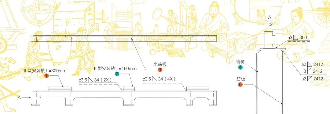 图5 弯板与筋板a2、(3HY、a2)焊缝的焊接方向