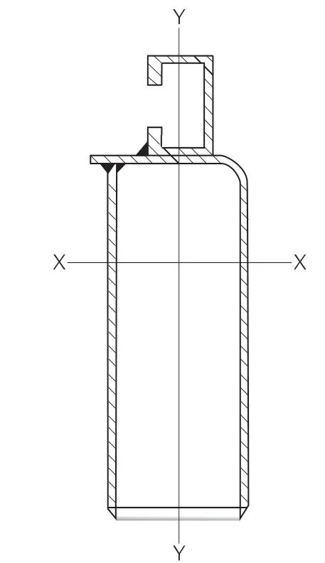 方案1:先矫正下挠再矫正旁弯。如果先矫正梁体的下挠,就要在如图10 所示的位置进行三角形加热,加热后梁体产生上拱变形,于是梁体的挠曲变形得到了矫正。然后进行旁弯矫正,从如图11 所示的加热线与x-x 轴和y-y 轴的位置关系可以看出,线状加热后梁体不但向y-y 轴方向产生变形,同时也会朝x-x轴方向产生变形,在旁弯得以矫正的同时,梁体又重复产生了下挠变形,所以后序还需对梁体的下挠进行二次矫正。
