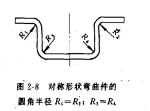 7).对称件的弯曲,左右弯曲半径应该一致,以便保证弯曲过程中的受力平衡,以防止在弯曲过程中产生滑动,见下图。