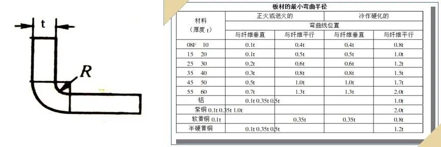 1).材料弯曲时,弯曲圆角当超过材料的极限强度时,就会产生裂缝和折断,应避免过小的弯曲圆角半径