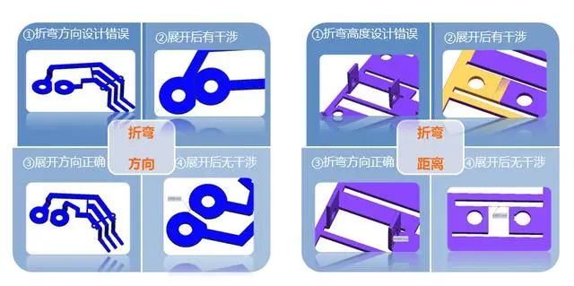 9).在设计弯曲件的时候,要考虑折弯前材料展开长度(方向)是否有足够的空间(两片之间距离>t)