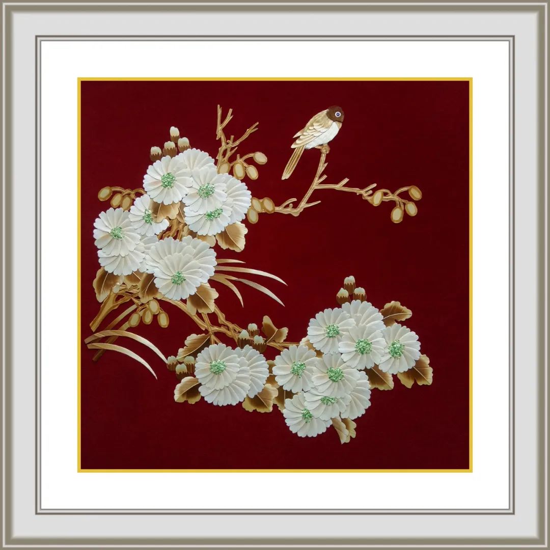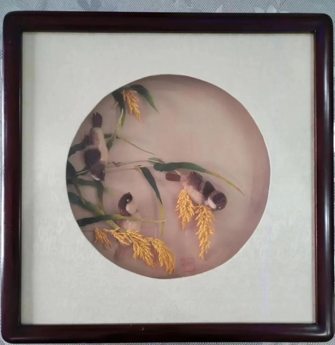欧文妹 丝绫堆绣《雀喜图》