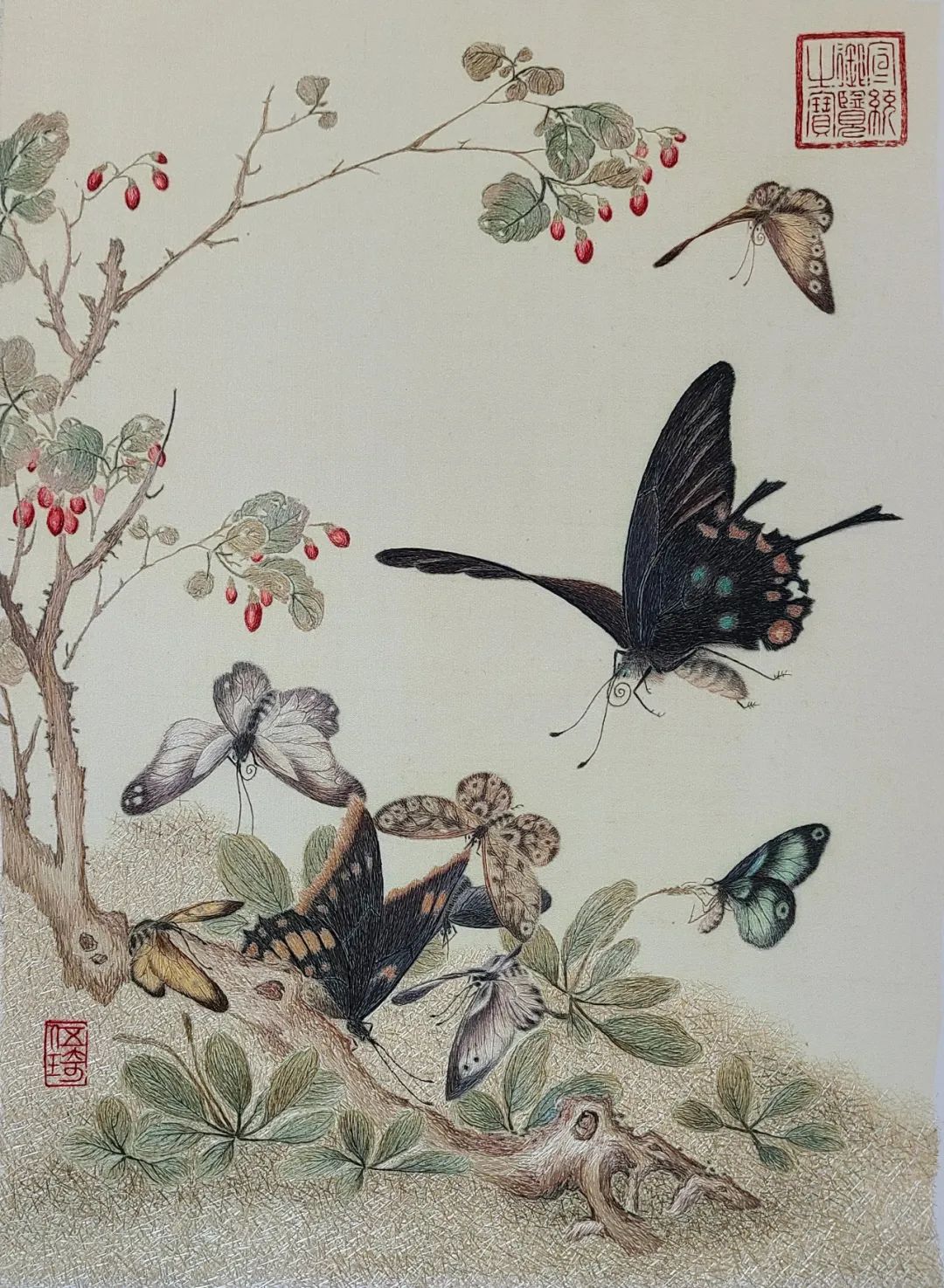 伍琦 乱针绣《花卉》