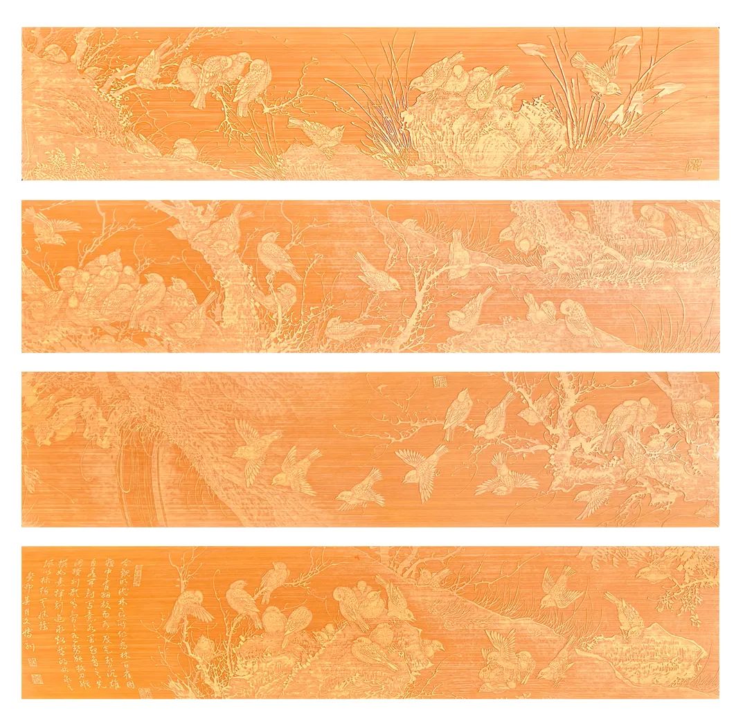 徐文博 留青竹刻《乔林百雀图》