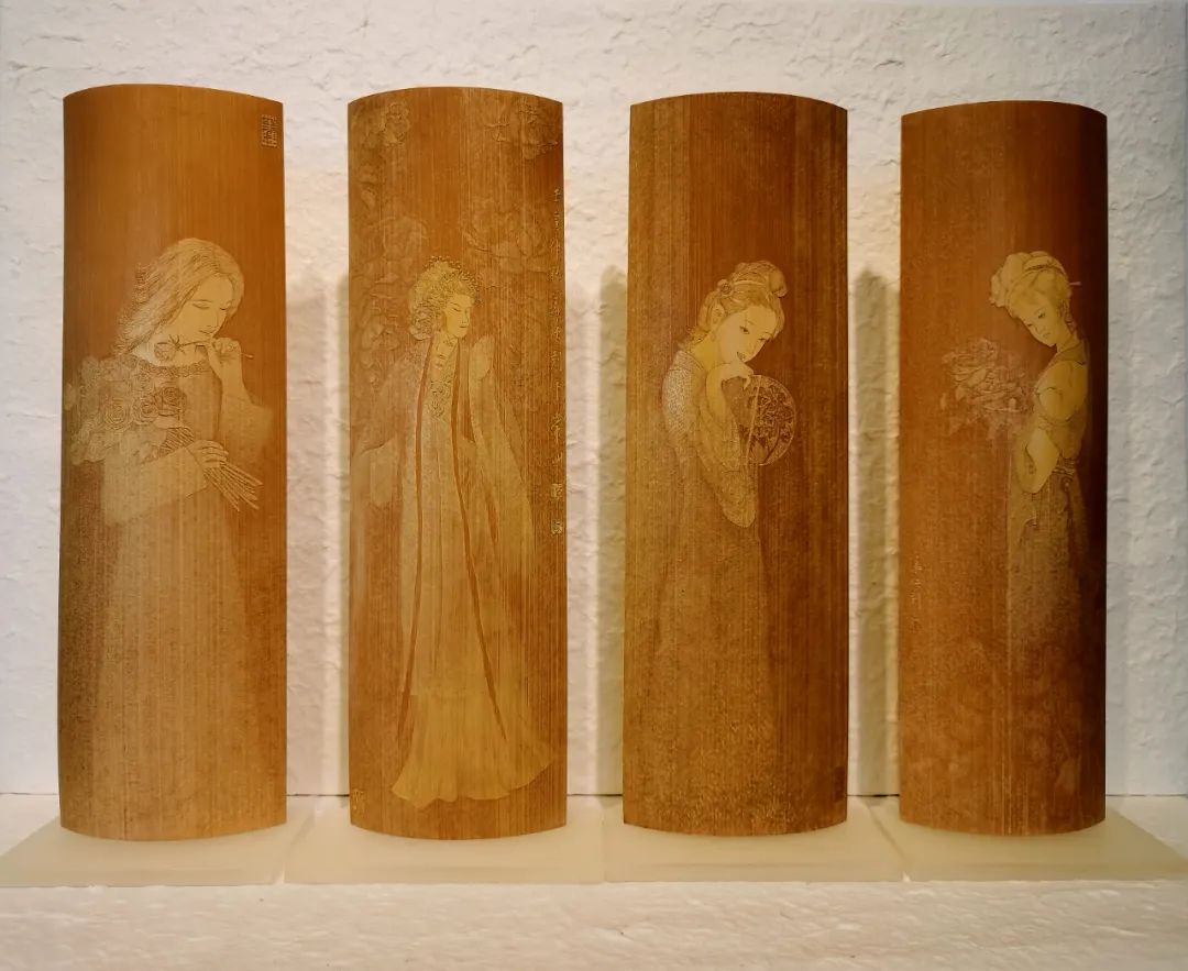 沈华强 留青竹刻《花间》