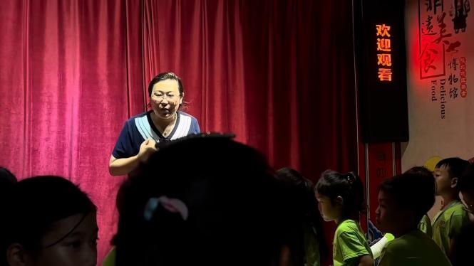 皮影表演开始前,在老师十分热情地组织下,小朋友们与队员们完成了默契的配合,队员梁宇璐、高诗源、陆晓焕与来自威海市第二实验小学的小朋友们进行了互动提问,从小朋友们的回答中我们了解到,即使是在科技愈发发达,互联网日趋便利的现代化社会,也还是会有一些祖国的花朵,他们充满着激情,由内而外地散发着对中华优秀传统文化的强烈的、炽热的爱!