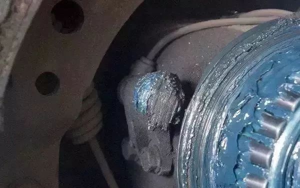 许多ABS传感器故障案例都是因为轴承黄油涂抹过多引起的,过多的黄油在安装车轮时很容易被挤到探头上。轻则影响ABS探头灵敏度,重则直接导致探头无法感应齿圈,让ABS系统故障。