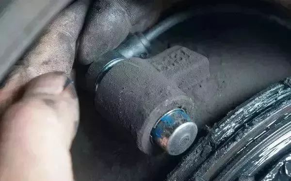 虽然ABS传感器探头表面几乎全部由金属覆盖,但是实际使用时,它却是个比较娇气的东西。由于其位置紧邻轴承,时间一长,很容易被各种灰尘和轴承中的黄油弄脏、甚至生锈,让它与轮毂齿圈之间填满污物,影响磁感应探测效果。