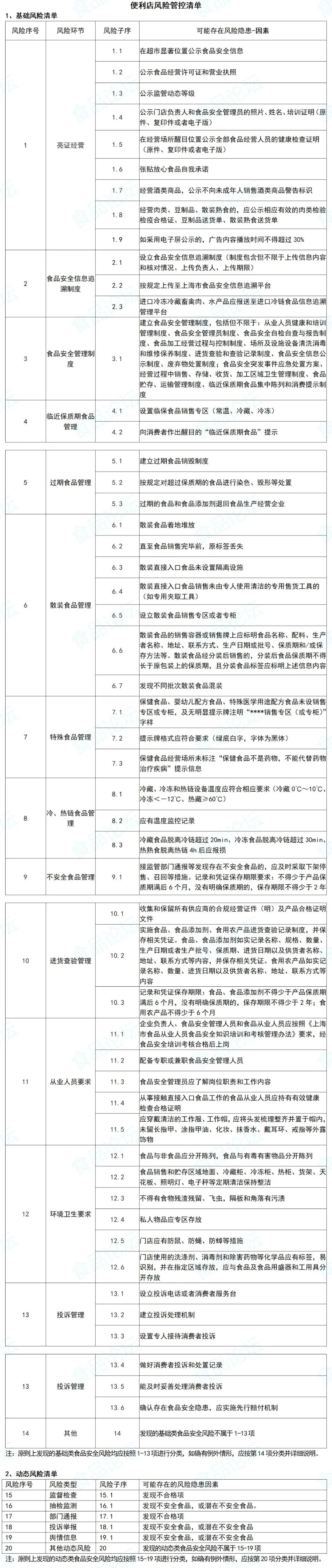 《食品生产企业制度、检查表和风险控制清单》和《餐饮和经营落实食品安全主体责任监督管理规定制度和记录》来了,请收藏。1.2 食品安全风险日管控、周排查、月调度管理制度2.1 集体用餐配送单位《风险管控清单》(日管控)2.5 报表-食品安全总监或食品安全员内部考核记录1.1掌握食品安全法、食安条例及食品生产经营相关法律法规以及法律责任等1.2掌握加工一般规定:场所、设备、设施、人员、食品相关产品及禁止性规定以及法律责任等1.3掌握食品安全监督要求:风险分级、监督抽查、抽样检查、投诉举报以及行政处罚等1.5具有食品安全事故处置知识:基本原则、处置方案、一般程序、配合义务以及法律责任等。1.7参加当地市场监管部门、企业组织的食品安全管理人员培训并通过考核2.1因食品安全违法被吊销许可证的企业,其法定代表人、直接负责的主管人员和其他直接责任人员,自处罚决定作出之日起五年内不得担任食品安全员2.2因食品安全犯罪被判处有期徒刑以上刑罚的人员,终身不得担任食品安全员3.2检查食品安全管理制度执行情况,管理维护食品安全生产经营过程记录材料,按照要求保存相关资料3.3食品安全员每日根据风险管控清单进行检查,形成《每日食品安全检查记录》,对发现的食品安全风险隐患,应当立即采取防范措施,按照程序及时上报食品安全总监或者企业主要负责人。未发现问题的,也应当予以记录,实行零风险报告3.4食品安全员每周至少组织1次风险隐患排查,分析研判食品安全管理情况,研究解决日管控中发现的问题,形成《每周食品安全排查治理报告》3.5对不符合食品安全标准的食品或者有证据证明可能危害人体健康的食品以及发现的食品安全风险隐患,及时采取有效措施整改并报告3.6负责拟订并组织实施本单位食品安全管理制度,明确各岗位的食品安全责任,强化过程管理3.7负责组织开展食品安全教育培训和考核,普及食品安全知识3.8负责食品、食品添加剂、食品相关产品采购索证索票、进货查验和采购记录管理3.10负责食品加工制作设施设备清洗消毒、养护管理3.15负责有关法律、法规、规章、规范性文件确定的其他餐饮服务食品安全管理1.2 食品安全风险日管控、周排查、月调度管理制度为了落实餐饮门店或经营门店食品安全主体责任,强化主要负责人食品安全责任,规范食品安全管理人员行为,根据《中华人民共和国食品安全法》及其实施条例、《企业落实食品安全主体责任监督管理规定》(总局令第60号)等法律法规及部门的规定,结合实际情况制定本制度适用于餐饮门店或经营门店内对风险隐患管控有关的管理层及各职能有关人员3.1店长或总部食品安全总监负责食品安全风险日管控、周排查、月调度管理制度的编制、修改及更新3.2食品安全管理员按照要求落实食品安全风险日管控相关工作,按照制度要求及时上报总部食品安全总监或门店店长3.3总部食品安全总监或门店店长负责对于风险排查中发现的食品安全风险隐患问题,明确责任人,相关责任人应采取相适应的防范措施,及时解决发现的问题,确保门店食品安全4.1 根据餐饮门店或经营门店落实主体责任要求,由食品安全员负责日管控、周排查、月调度具体工作的落实情况4.2.1日管控风险内容参照各业态的《风险管控清单》4.2.2正常营业期间,食品安全员每日根据《风险管控清单》进行检查,排查加工或销售各个环节可能存在的食品安全风险隐患,并将检查结果汇总记录在《每日食品安全检查记录》表上,可采用电子表格的形式予以记录。未发现问题的,也应当予以记录4.2.3对于日管控检查中发现的食品安全风险隐患问题,明确责任人,及时反馈门店店长或总部食品安全总监立即采取防范措施。对于现场能立即整改的应立即整改;对于不能现场立即整改的,应明确整改期限,在后续日管控检查中跟踪验证整改落实情况4.3.1正常营业期间,食品安全员每周至少根据公司《各餐饮和经营企业风险管控周排查清单》组织1次风险隐患排查,全面排查加工或销售过程各环节可能存在的食品安全风险隐患4.3.2正常营业期间,排查可以结合日管控情况、现场自查情况、其他各渠道收集的食品安全信息等,分析门店的食品安全管理情况,检讨日管控中存在的问题,对于频繁发生或者存在较高食品安全风险的问题,应制定相应的纠正预防措施,督促相关人员落实整改并进行跟踪验证整改结果4.3.3对于周排查形成的《每周食品安全排查治理报告》,应及时上报至店长或总部食品安全总监,抄送相关责任负责人,使其知晓存在的食品安全风险,督促相关责任人采取相应的管控措施,确保食品安全风险可控4.3.4对排查出的风险隐患,如能在短期完成治理整改的,应立即采取措施进行治理排除;对情况复杂、短期内难以治理排除的,要制订整改方案和应对预案,落实治理整改措施、整改效果、责任人和期限等,防范突发事件的发生4.4.1根据门店落实主体责任要求,由总部食品安全总监或门店食品安全员负责月调度具体工作的落实情况,由店长组织召开月调度会议,听取食品安全员关于门店食品安全管理工作的情况汇报4.4.2由食品安全员汇总最近一个月度内企业的食品安全管理工作情况,主要包括日管控、周排查中发现的重大食品安全风险问题及整改情况,日常食品安全管理情况的汇总分析4.4.3
