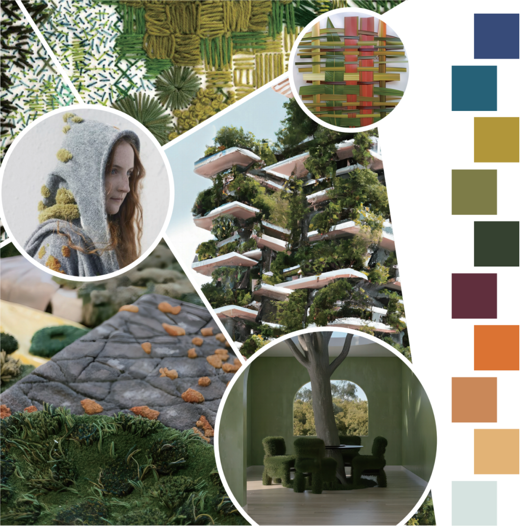 这一主题总结了我们这个时代最大的挑战之一:在保护自然的重要性和社会进步的驱动力之间找到完美的平衡。这个概念背后的理念是在人类尺度内建立一个健康的环境,让自然能够顺利地融入城市、建筑、家居和我们生活的其他方面。让自然进入我们的房间,创造我们自己的伊甸园。自然元素,如苔藓、叶子、根茎、海葵、水等真实材料或由纤维和其他环保材料模仿出的自然材料成为设计元素,产生具有有机灵感的颜色、质感和形状。