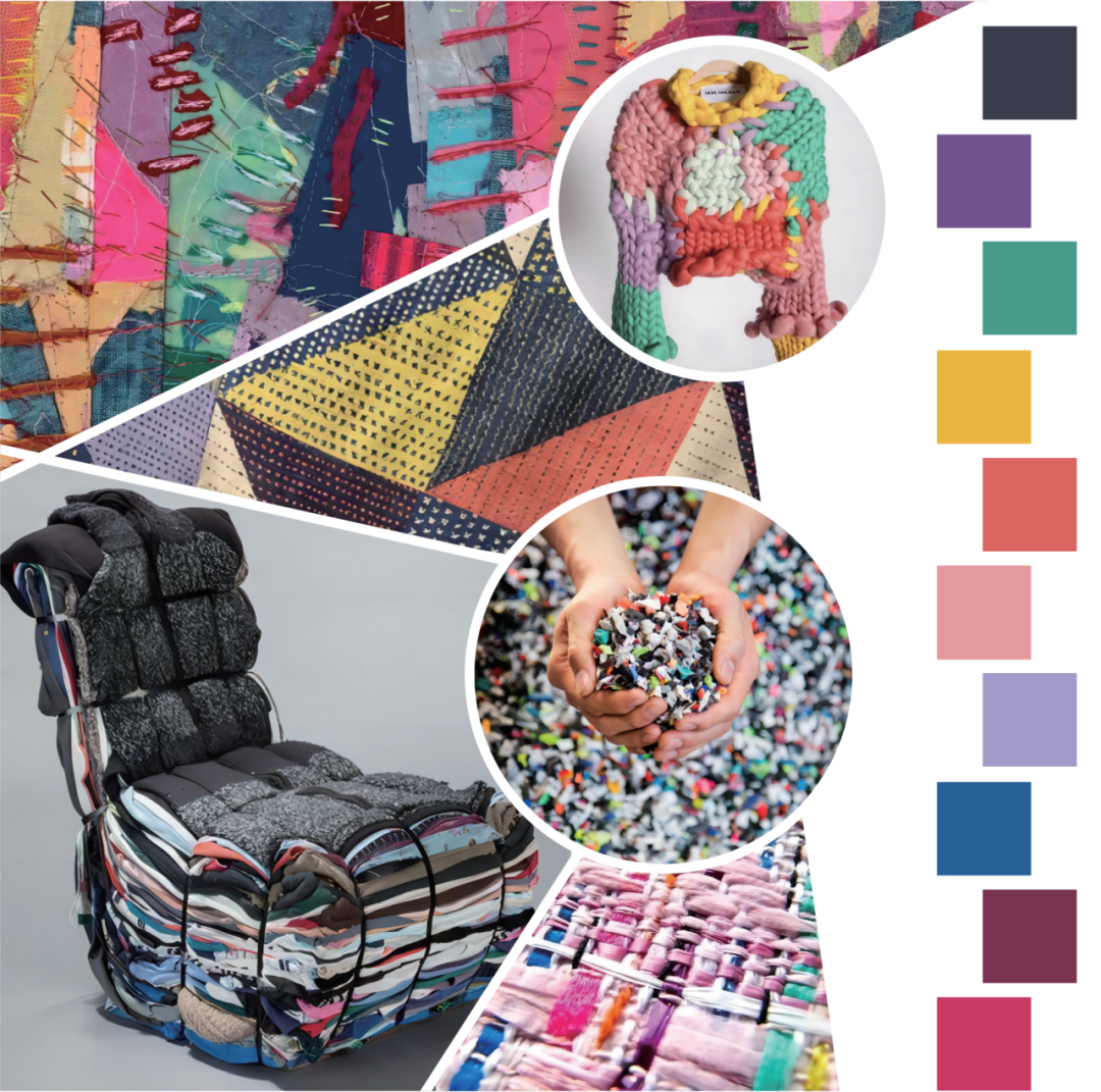 当前循环经济的重要性日益显现,生产废料和回收材料不断具有新的重复利用方法。通过巧妙的创意、拼接、缝补、修复及进一步的变形技术,能够改变材料的性质、形状和形式,焕发出新的生命。色彩缤纷的线条、强烈的色调对比、惊艳的纹理,奇妙的细节,呈现出令人心喜的意想不到的组合结果,激发着我们对作品的设计历程以及材料变化效果的好奇心和探索欲。