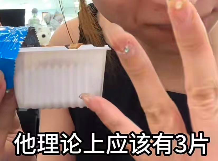 视频里,这位博主晒出了自己买的一盒饼干,按理来说,根据饼干的包装设计来说,是应该有均匀的三等份的。