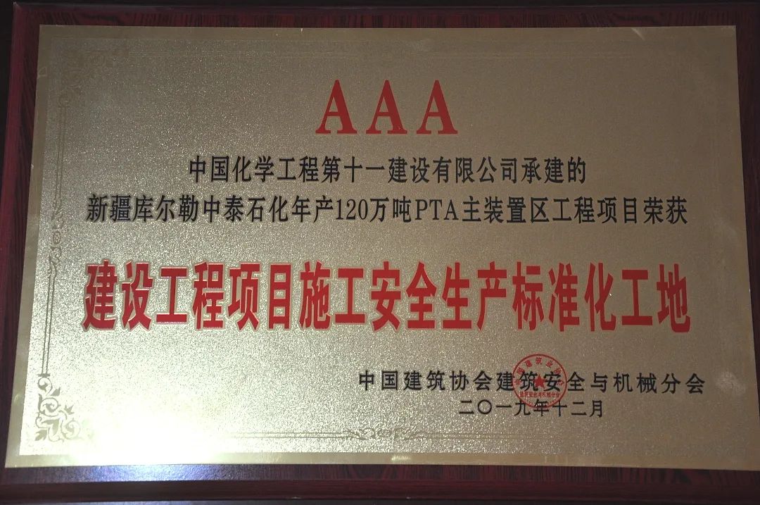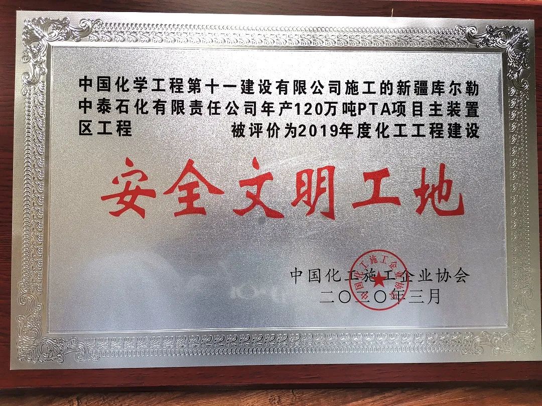 近日,公司新疆库尔勒中泰石化年产120万吨PTA项目获得“全国化学工业优质工程奖”殊荣,这是继荣获“2019年度优秀吊装工程”奖、“AAA施工安全生产标准化工地”、“化工建设工程安全文明工地”之后荣获的又一化工建设领域奖项。这是对项目施工管理过程中严格履行质量、环境及职业健康安全管理体系的褒奖,也是对工程设计技术领先、项目管理规范、工程质量优良、运行安全可靠、综合效益显著的充分肯定。
