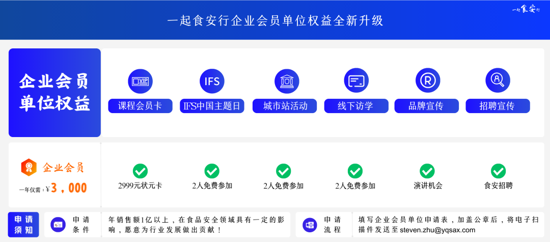 申请条件:企业年销售额1亿以上,在食品安全领域具有一定的影响,愿意为行业发展做出贡献 !