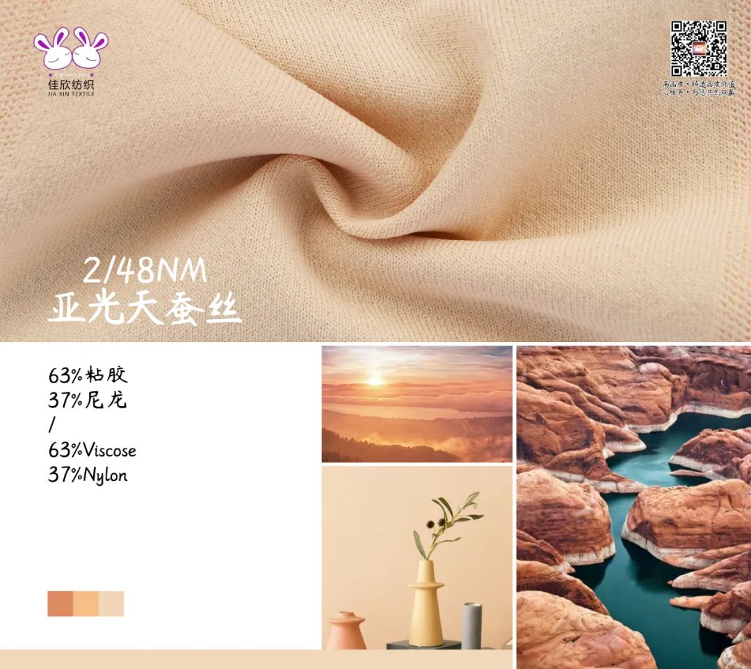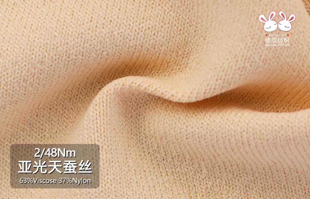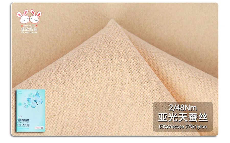 2/48NM亚光天蚕丝面料织造而成手感干爽 ,亲肤透气.上身凉爽透气,触肤柔滑舒爽.具有较大的延伸性、回弹性、强度高、弹性好、耐热、耐腐、着色好、柔感性强等特点.