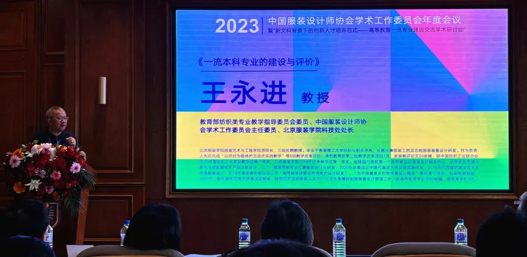 教育部纺织类专业教学指导委员会委员、北京服装学院科技处处长王永进教授以北京服装学院服装设计与工程专业为例详细解读国家一流本科专业建设目标与评价指标,提出要始终围绕以学生为中心,以产出为导向的专业建设思路。