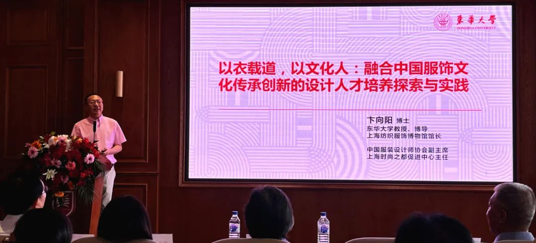 上海纺织服饰博物馆馆长、东华大学服装与艺术设计学院博士生导师卞向阳教授从“以衣载道,以文化人”的角度,探讨融合中国服饰文化传承创新的设计人才培养举措与方法。